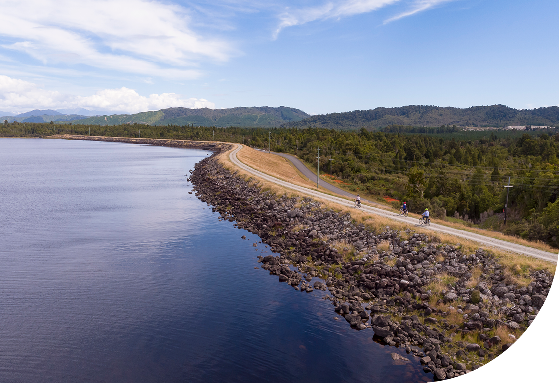 The West Coast Wilderness Trail is 4 days of incredible scenery, smooth mountain bike trails, unique flora and fauna, and fascinating history on the South Island’s West Coast. The trail spans from Greymouth to Ross, and crosses through Manawa Energy’s Dillmans Dam near Kumara, and Lake Kaniere, the reservoir for our Kaniere Forks/McKay’s Creek power scheme.